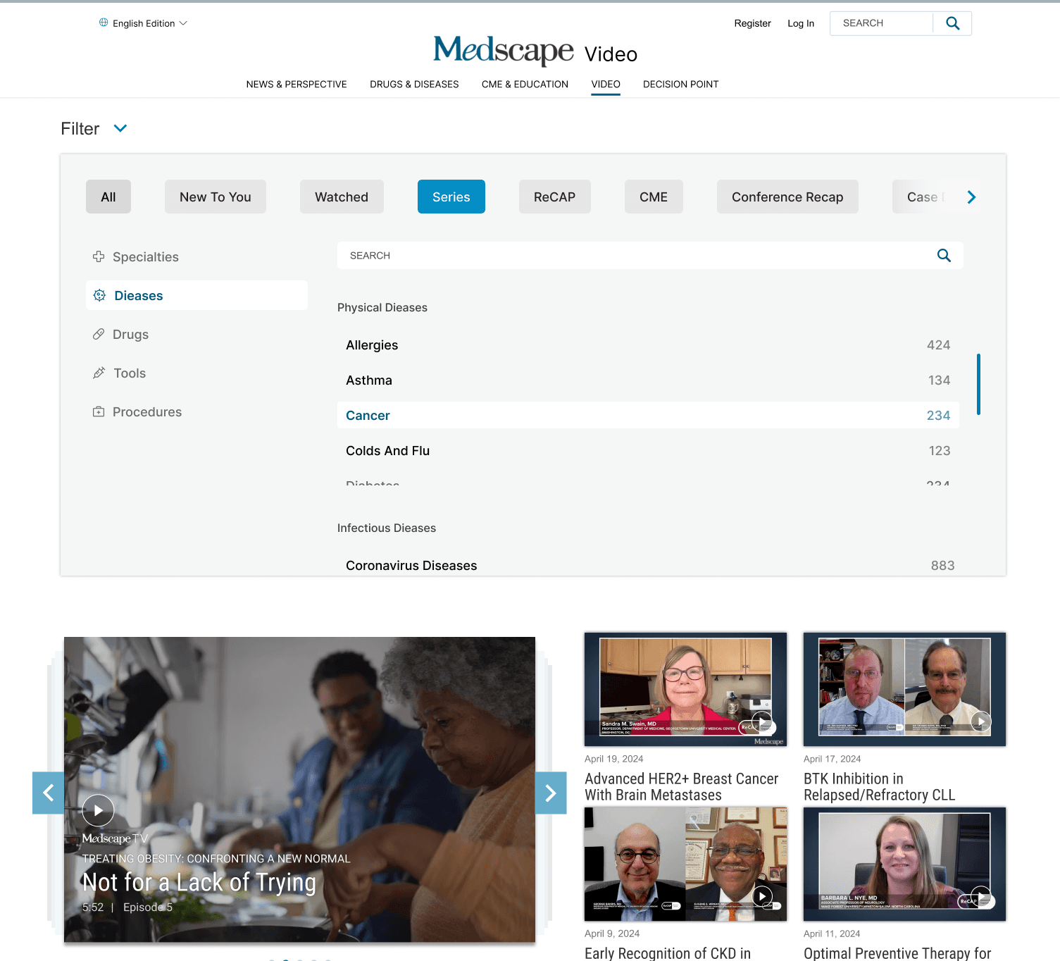 We aim to enhance user engagement and efficiency on Medscape by improving video content features, integrating a dynamic content explorer, refining search functionalities, and implementing intuitive categorical filters.