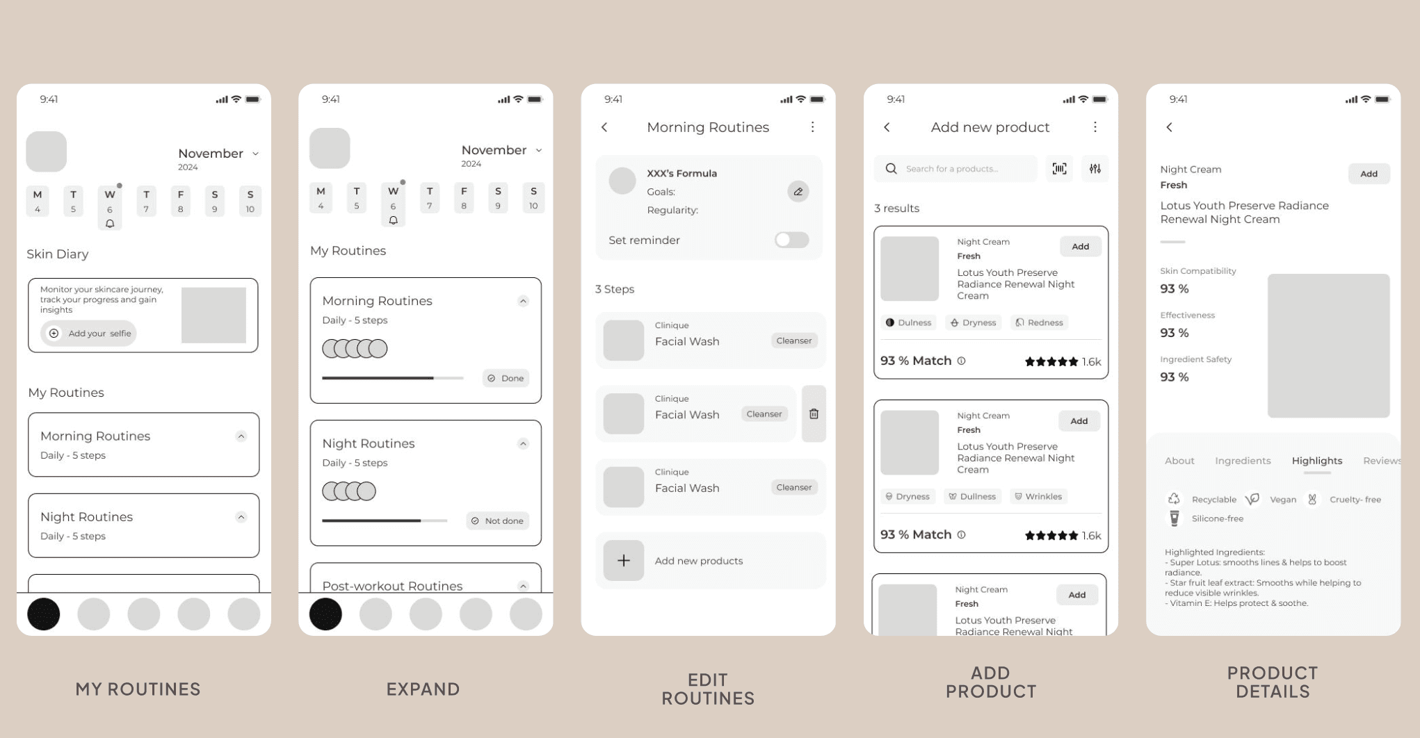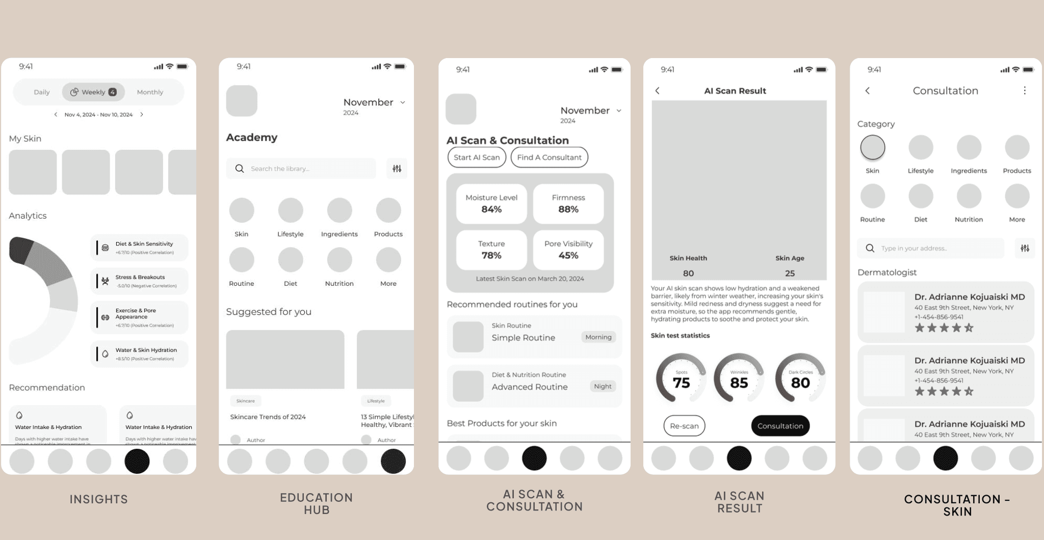 By mapping this process, we identified key pain points and opportunities to provide clear guidance, personalized recommendations, and educational support to make the skincare journey smoother and more effective.