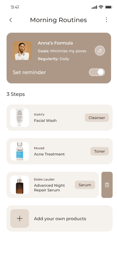 To offer flexibility by allowing users to customize AI-generated routines with their own products. Empowering users to blend AI intelligence with personal preferences for a truly customizable skincare experience