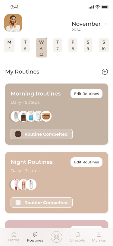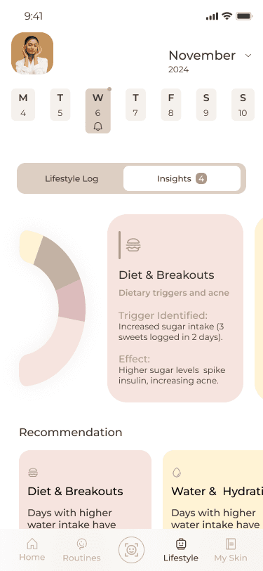 Feature that syncs users' skincare routines with their lifestyle - sleep, diet, stress, nutrition