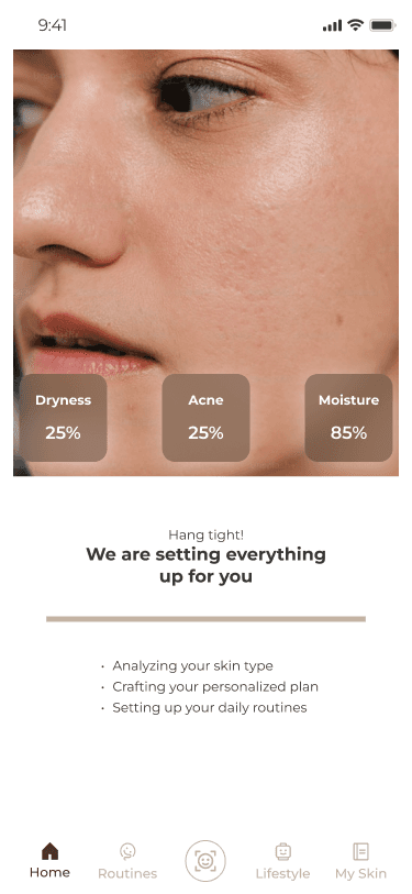 Generate a personalized skincare routine based on the AI analysis and users’ specific concerns.