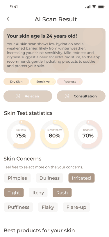 We aims to seamlessly integrate AI-recommended products into the user’s skincare routine. AI-powered personalization that simplifies skincare by providing tailored product recommendations based on real-time skin analysis