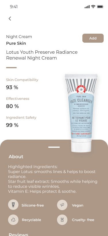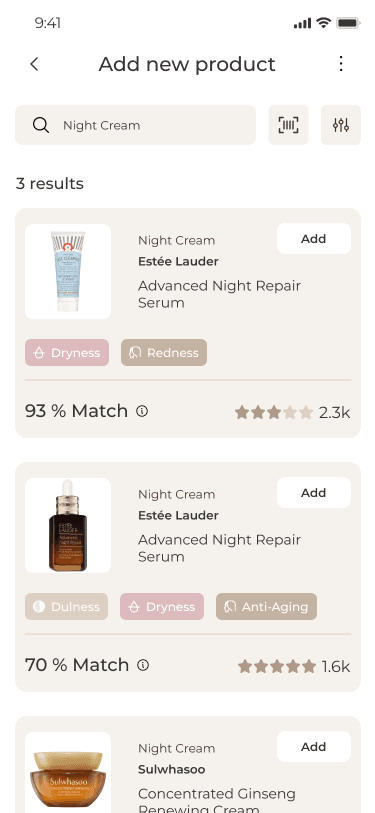 Add to Routine – User selects a product and adds it to their routine with a single tap.