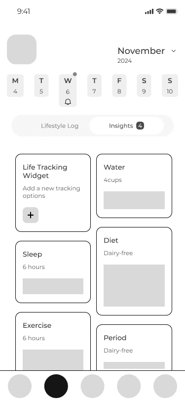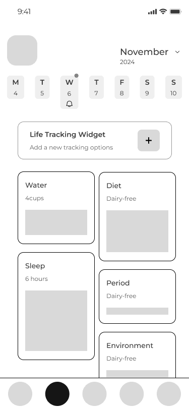 Add Widget – User chooses widgets like hydration, sleep, or diet
