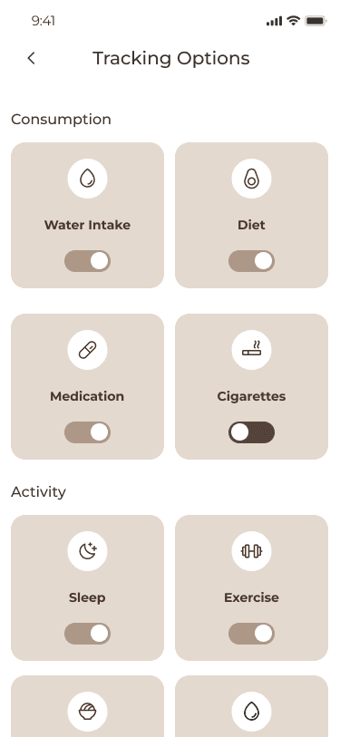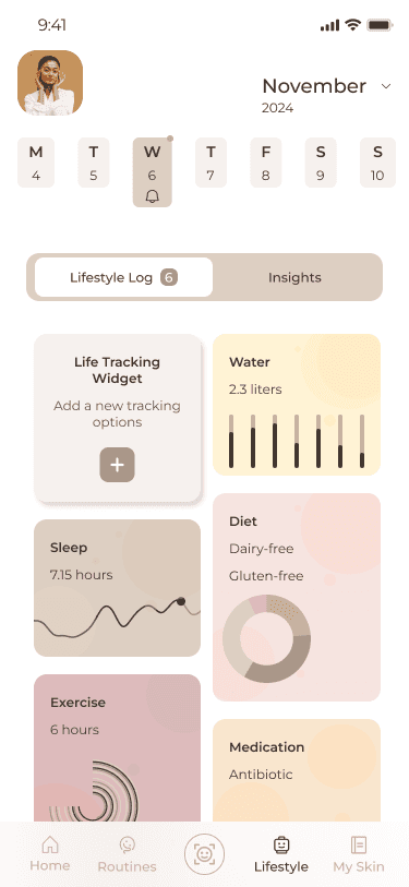 To enable users to track lifestyle factors (diet, sleep, stress) that influence skin health. Connect skincare with lifestyle insights by tracking personalized health factors directly in your app.